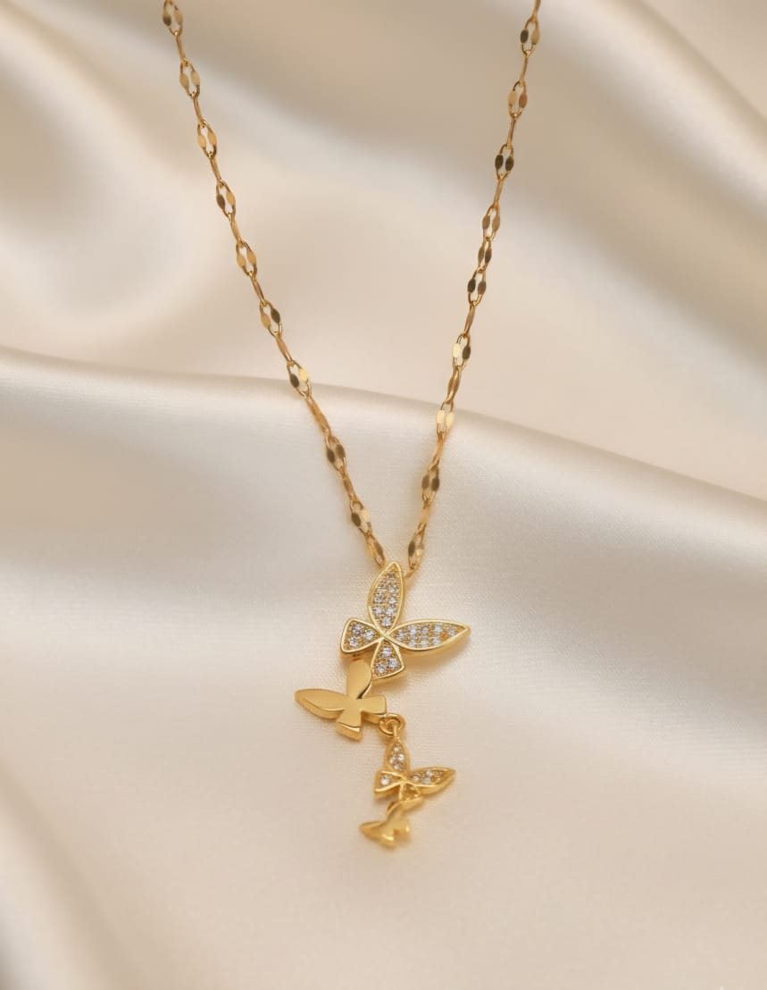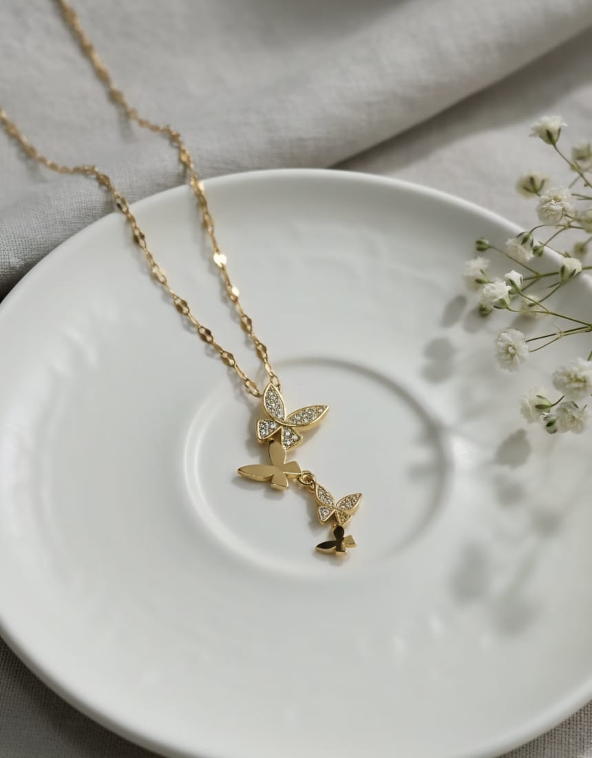 Delicate butterfly pendant crafted for everyday elegance. Anti-tarnish and waterproof, it resists wear from daily activities—perfect for college, office, or casual outings. Lightweight design ensures all-day comfort without compromising on style.