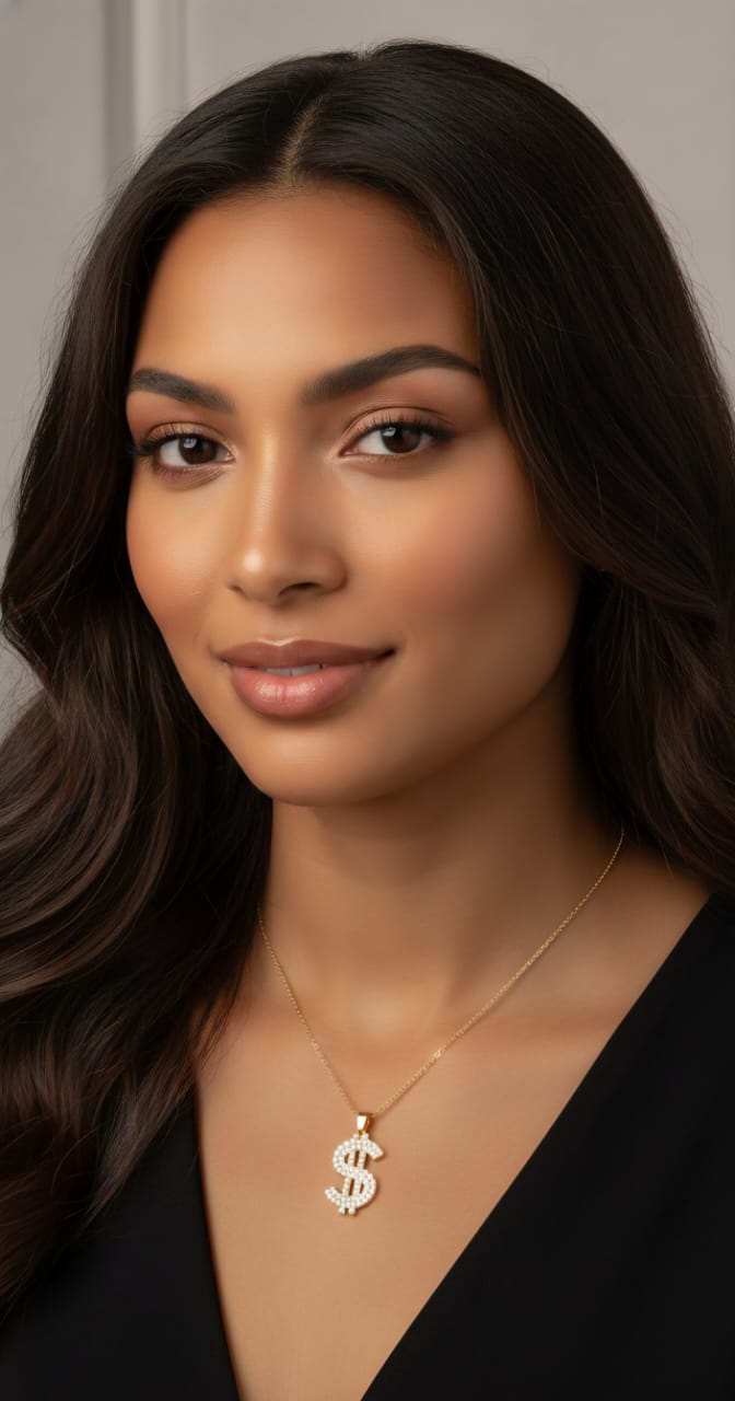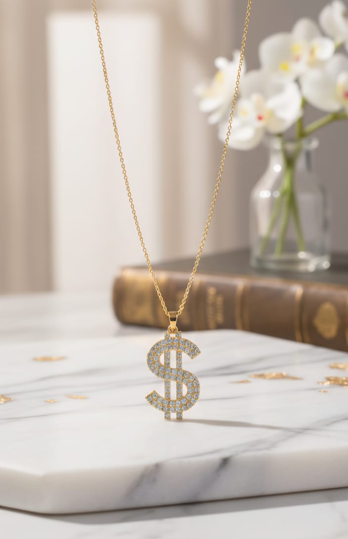 Gold tone diamond dollar sign pendant