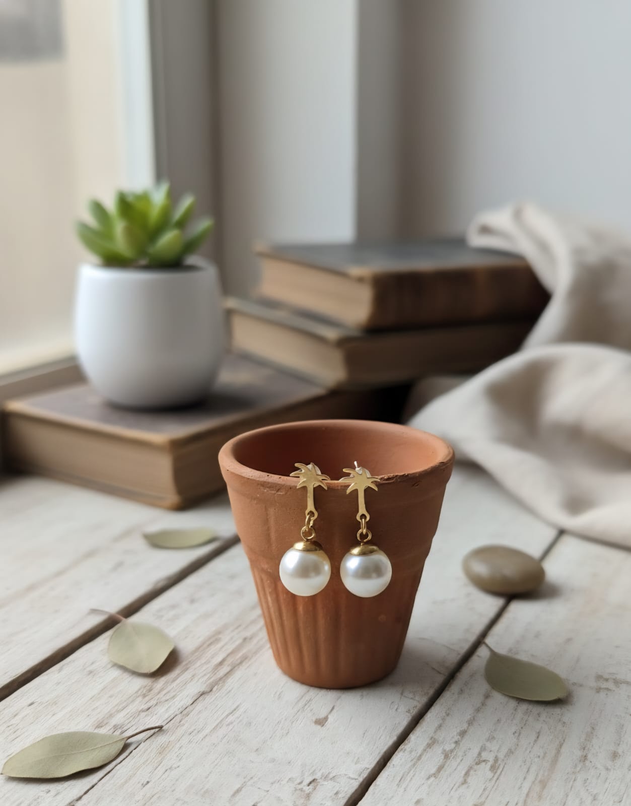 Pearl Palm tree charm stud
